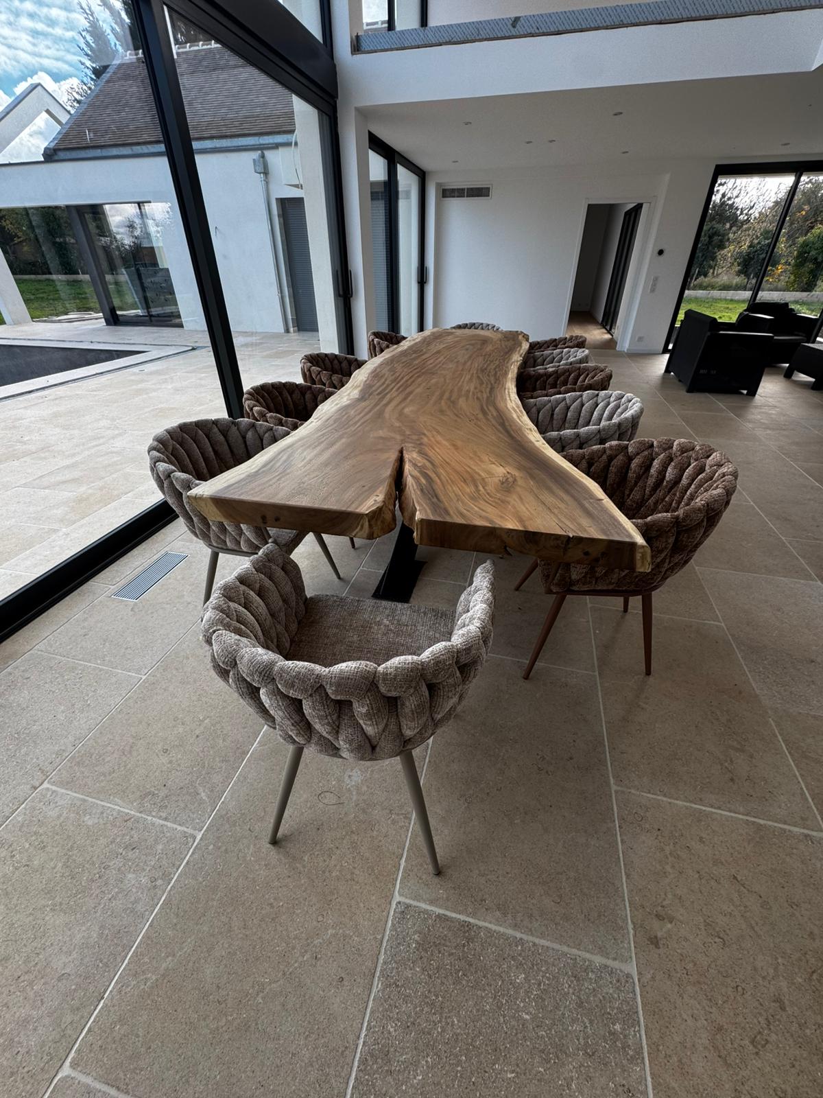 Le secret de notre chaise "ONDA" réside dans son confort exceptionnel. Son dossier ergonomique et son coussin en mousse de 5 cm d'épaisseur créent une position assise idéale, même pendant les dîners qui s'éternisent. Ses accoudoirs offrent un soutien supplémentaire pour une détente absolue.